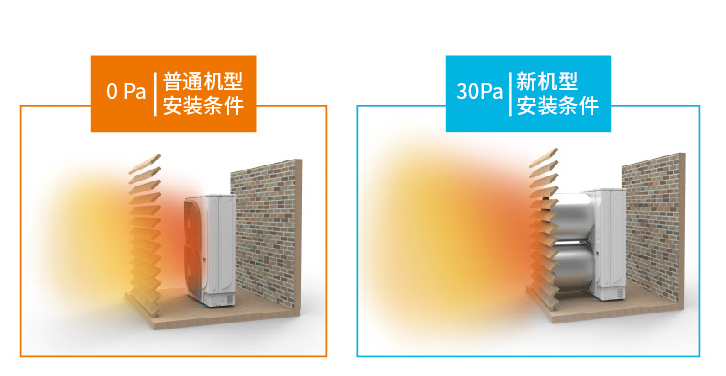 30Pa機(jī)外靜壓 ,有效抵抗季風(fēng)對(duì)制冷、制熱的影響,并且自動(dòng)防止風(fēng)雪侵入外機(jī)機(jī)箱內(nèi)部。