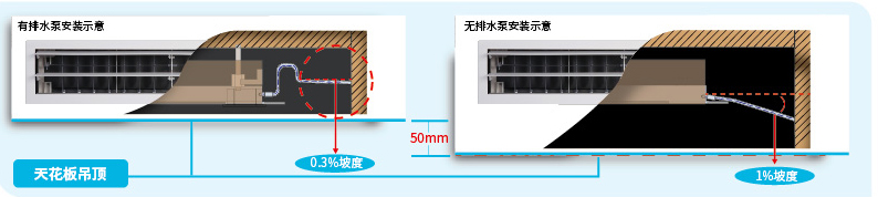 一般情況下,安裝中央空調(diào)室內(nèi)機(jī)時(shí),內(nèi)機(jī)與冷凝水管之間要預(yù)留一定的高度差,以保證管道內(nèi)冷凝水自然流動(dòng)。但是,這會(huì)增加吊頂厚度。
